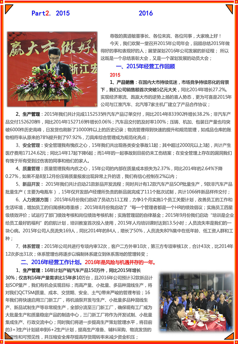 2015年浙江宏鼎汽摩配件有限公司年會簡報